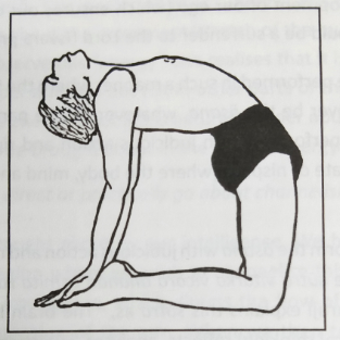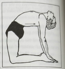 l “正确的骆驼式是脚趾和髌骨在做上犬式(urdhva mukha svanasana),而大腿后侧的顶端在做下犬式(adho mukha svanasana)”。
