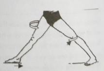 P 拓宽后方脚的皮肤,让皮肤去触碰落于地板上的后脚跟的外角。